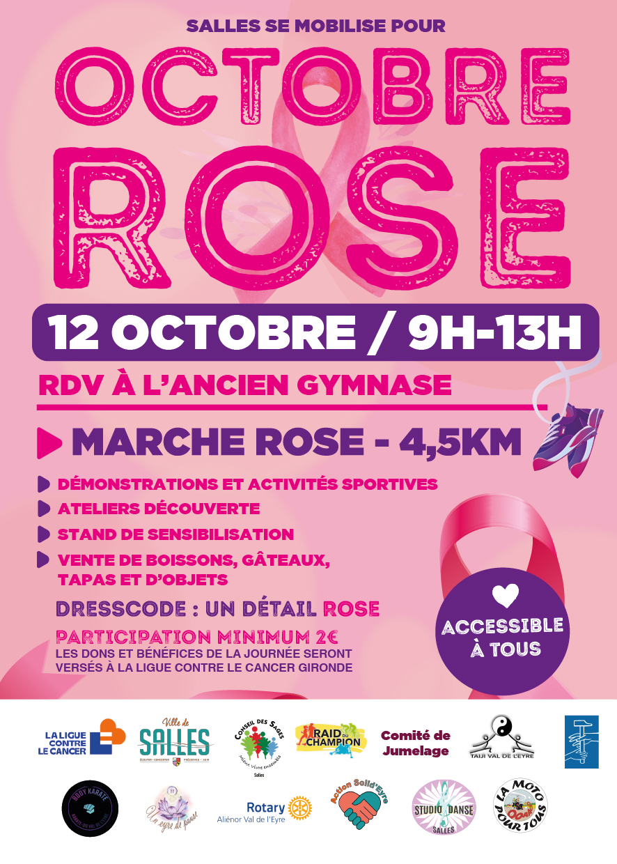 🌸 Marche rose (départ à 10h – participation 2€ minimum reversés à la Ligue contre le cancer Gironde)