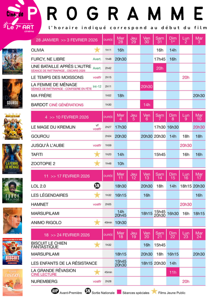 Programme du cinéma : du 28 janvier au 24 février 2026