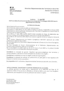 Ouverture cloture campagne chasse Gironde 2023-2024