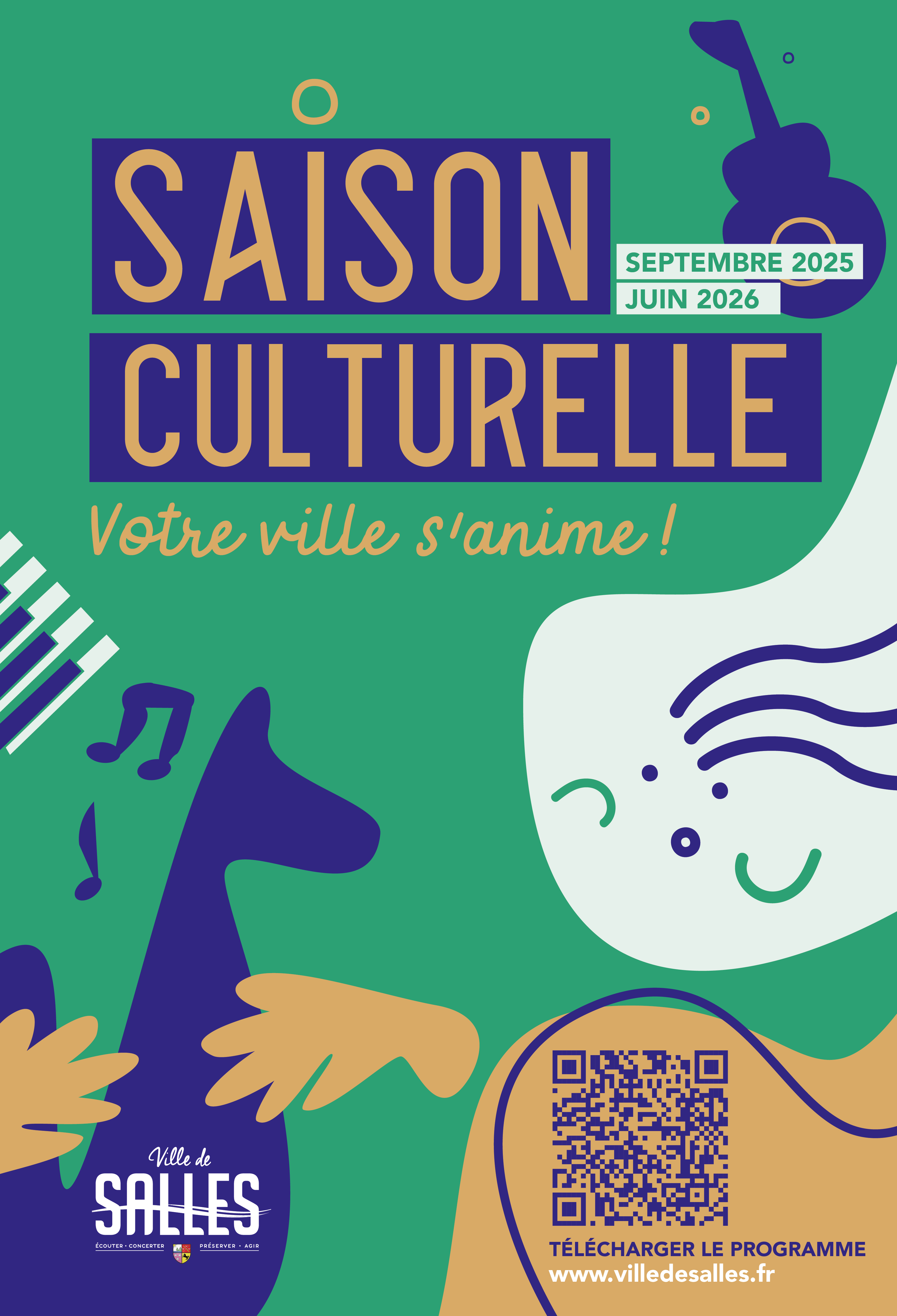 Cette saison culturelle 2025-2026 reflète pleinement notre volonté de faire vivre et rayonner la culture à Salles. Elle affirme notre soutien aux artistes, qu’ils soient confirmés ou émergents, notre désir de partager avec vous la richesse et la diversité des expressions artistiques. Notre ambition: rendre également accessible à tous la culture grâce à des pratiques artistiques.